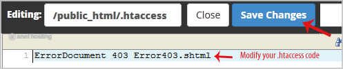 8. Make changes to your .htaccess file and then click on the Save Changes button.