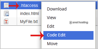 6. Right-click on the .htaccess file and then on Edit in the Context Menu.