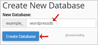 3. In New Database: Username field enter a name for the new database you wish to create in the text field.