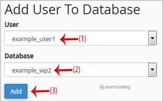 3. Scroll down to the end of the page and under Add User to Database, select a user from the dropdown list, and then choose a Database from the list.