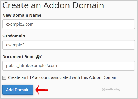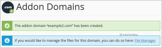New Domain Name: Your Addon domain name like example2.com