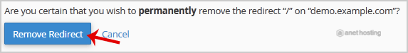 4. For confirmation, click on the Remove Redirect button once more.